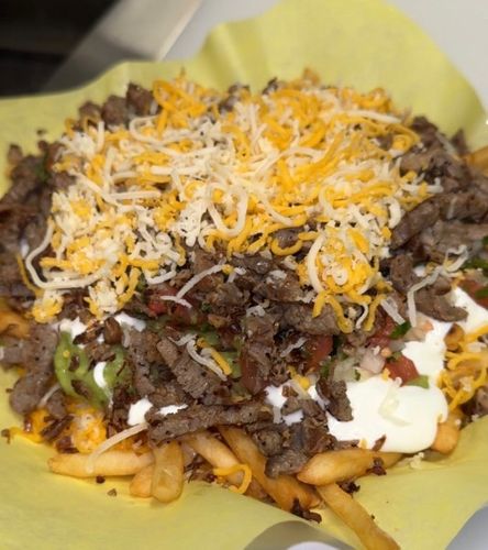 Carne Asada, Sour Cream, Cheese & Guacamole Served Over French Fries